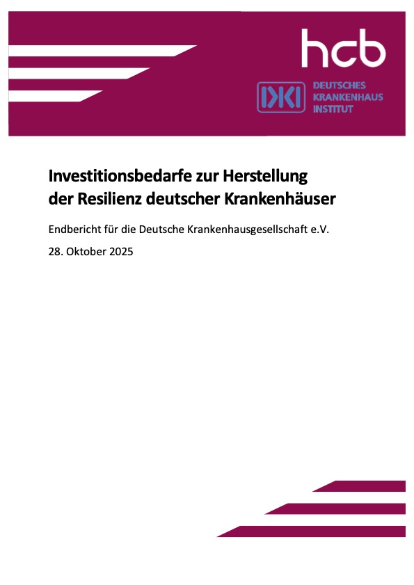 29.10.2025·Die Deutsche Krankenhausgesellschaft (DKG) hat in Berlin eine umfangreiche Studie vorgestellt, die erhebliche Investitionen und zahlreiche politische Entscheidungen anmahnt, um die Krankenhäuser krisenresilient zu machen. Dies sei essentiell und existentiell für die nationale Daseinsvorsorge. Mit der Untersuchung hat die DKG das Institute for Health Care Business (hcb) und das Deutsche Krankenhausinstitut (DKI) beauftragt.